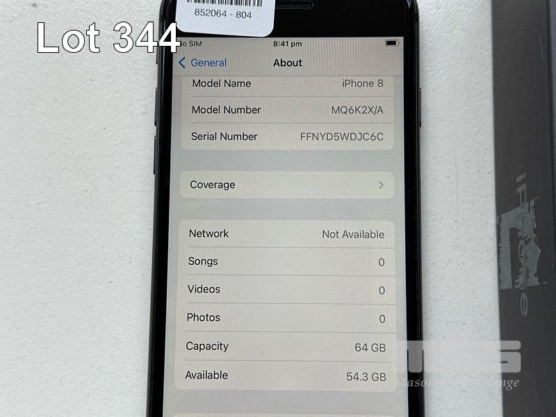 APPLE iPHONE 8, 64GB, SPACE GREY, MODEL MQ6K2X/A, BATTERY HEALTH 82% (NO CABLE, NO CHARGER) S/N:FFNYD5WDJC6C