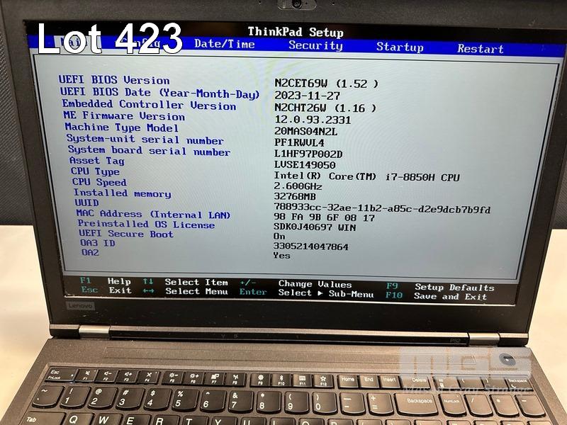 LAPTOP, LENOVO THINKPAD P52 MOBILE WORKSTATION, TYPE 20MA, CORE i7 8850H (8TH GEN) @ 2.6GHz, 32GB DDR4 RAM, 512GB NVMe M.2 SSD, 15.6" WIDESCREEN (1920x1080), 4GB NVIDIA QUADRO P2000 VIDEO, Wi-Fi, BLUETOOTH, WINDOWS 11 PRO INSTALLED & POWER SUPPLY (NOTE: MINOR MARKS ON SCREEN) S/N:PF1RWVL4