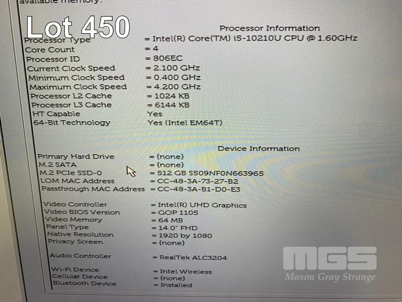 LAPTOP, DELL LATITUDE 5410, CORE i5 10210U (10TH GEN) @ 1.6GHz, 8GB DDR4 RAM, 512GB NVMe M.2 SSD, 14" WIDESCREEN (1920x1080), INTEL UHD GRAPHICS, Wi-Fi, BLUETOOTH, WINDOWS 11 HOME INSTALLED (NO POWER SUPPLY) (NOTE: MINOR MARKS ON SCREEN, CASING PEELING, BATTERY NOT HOLDING CHARGE) S/N:CQTV373