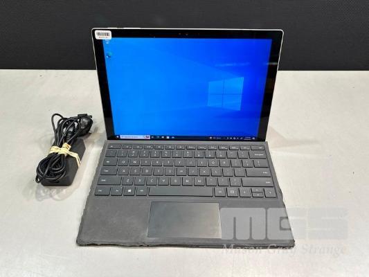 TABLET PC, MICROSOFT SURFACE PRO 4, MODEL 1724, CORE i5 6300U (6TH GEN) @ 2.4GHz, 8GB RAM, 256GB SSD, 12.3" TOUCHSCREEN (2736x1824), INTEL HD GRAPHICS 520, Wi-Fi, BLUETOOTH, WINDOWS 10 PRO INSTALLED, KEYBOARD TYPE COVER & POWER SUPPLY (NOTE: KEYBOARD COVER WORN) S/N:030152363653