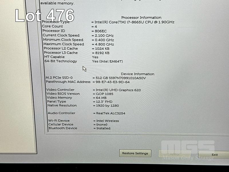 TABLET PC, DELL LATITUDE 7200 2-in-1, CORE i7 8665U (8TH GEN) @ 1.9GHz, 16GB DDR3 RAM, 512GB NVMe M.2 SSD, 12.3" TOUCHSCREEN (1920x1080), INTEL UHD GRAPHICS, Wi-Fi, BLUETOOTH, WINDOWS 11 PRO INSTALLED, KEYBOARD & USB-C POWER SUPPLY (NOTE: MINOR MARKS ON SCREEN) S/N:47C1YY2