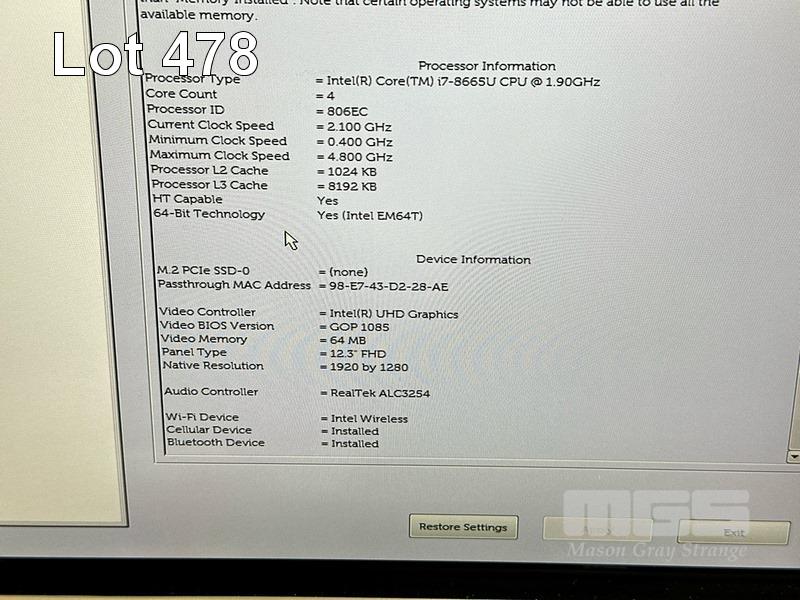 TABLET PC, DELL LATITUDE 7200 2-in-1, CORE i7 8665U (8TH GEN) @ 1.9GHz, 16GB DDR3 RAM, NO HDD, 12.3" TOUCHSCREEN, KEYBOARD (NO USB-C POWER SUPPLY) (NOTE: BATTERY NOT HOLDING CHARGE, MINOR MARKS ON SCREEN) S/N:B8N9ZY2
