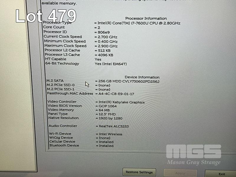 TABLET PC, DELL LATITUDE 5285, CORE i7 7600U (7TH GEN) @ 2.8GHz, 16GB DDR3 RAM, 256GB M.2 SSD, 12.3" TOUCHSCREEN (1920x1080), INTEL HD GRAPHICS 620, Wi-Fi, CELLULAR, BLUETOOTH, WINDOWS 10 PRO INSTALLED & KEYBOARD (NO USB-C POWER SUPPLY) (NOTE: KEYBOARD FAULTY, DENT IN CASING, MARKS ON SCREEN) S/N:8NDDMH2