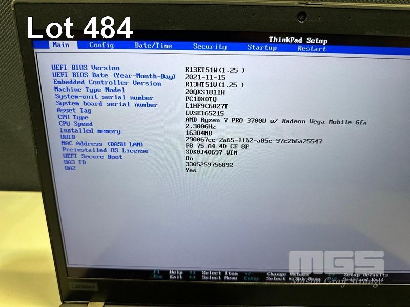 LAPTOP, LENOVO THINKPAD T495s, TYPE 20QK, AMD RYZEN 7 PRO 3700U @ 2.3GHz, 16GB DDR RAM, 512GB NVMe M.2 SSD, 14" TOUCHSCREEN (1920x1080), Wi-Fi, BLUETOOTH, WINDOWS 11 PRO INSTALLED (NO USB-C POWER SUPPLY) (NOTE: INCORRECT MODEL SCREEN FRAME - T490s, MARKS ON SCREEN) S/N:PC1DX0TQ