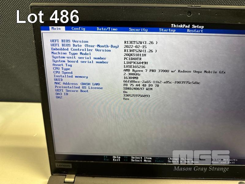 LAPTOP, LENOVO THINKPAD T495s, TYPE 20QK, AMD RYZEN 7 PRO 3700U @ 2.3GHz, 16GB DDR RAM, 512GB NVMe M.2 SSD, 14" TOUCHSCREEN (1920x1080), Wi-Fi, BLUETOOTH, WINDOWS 11 PRO INSTALLED (NO USB-C POWER SUPPLY) (NOTE: TOUCHPAD FAULT, SCREEN FAULT, MARKS ON SCREEN) S/N:PC1DX0TR