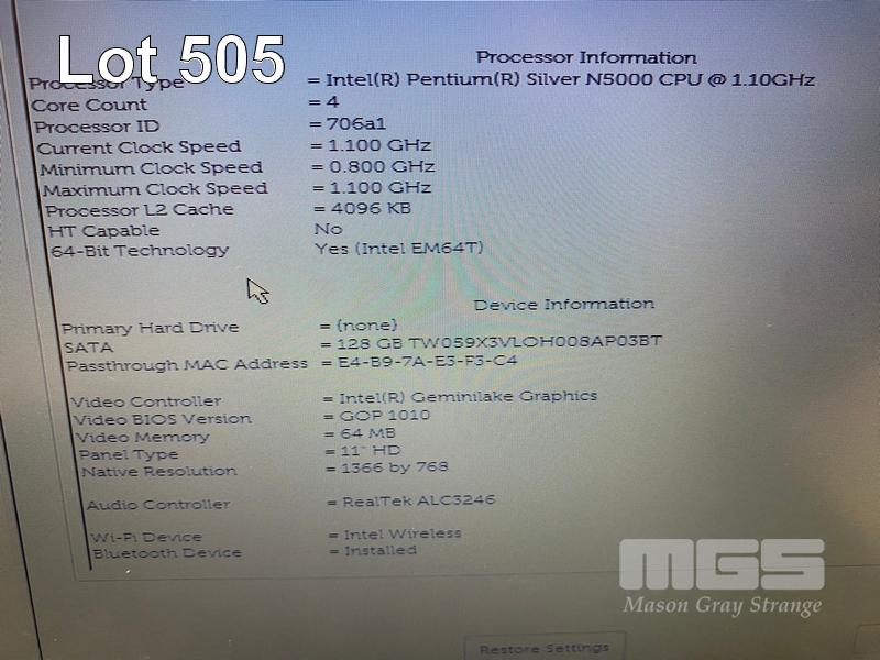 LAPTOP, DELL LATITUDE 3190, PENTIUM SILVER N5000 @ 1.1GHz, 4GB DDR4 RAM, 128GB M.2 SSD, 11.6" WIDESCREEN (1366x768), INTEL UHD GRAPHICS 605, Wi-Fi, BLUETOOTH, WINDOWS 11 PRO EDUCATION INSTALLED & POWER SUPPLY S/N:3PC76S2