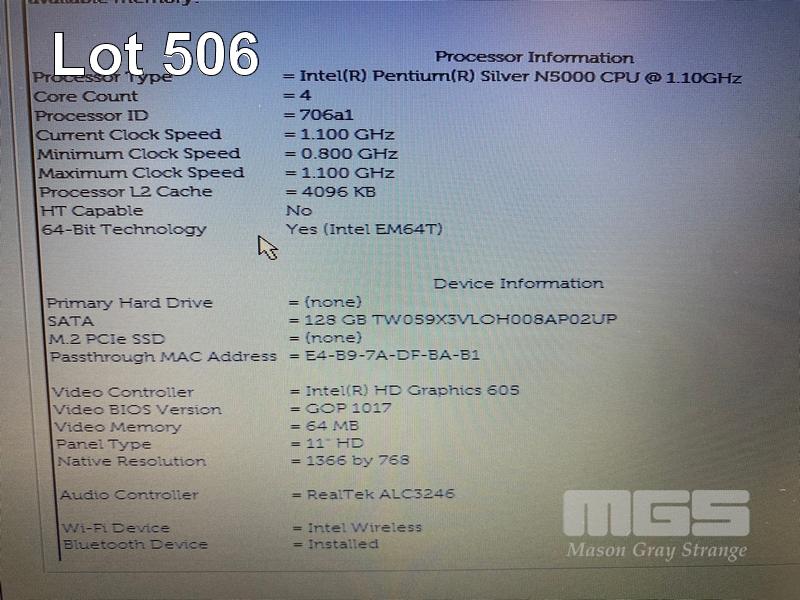 LAPTOP, DELL LATITUDE 3190, PENTIUM SILVER N5000 @ 1.1GHz, 4GB DDR4 RAM, 128GB M.2 SSD, 11.6" WIDESCREEN (1366x768), INTEL UHD GRAPHICS 605, Wi-Fi, BLUETOOTH, WINDOWS 11 PRO EDUCATION INSTALLED & POWER SUPPLY S/N:H1Z66S2