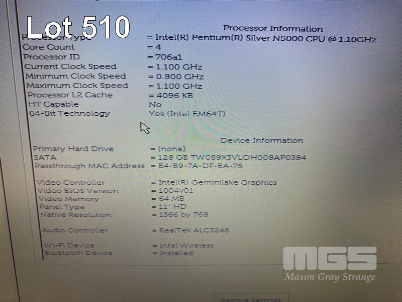 LAPTOP, DELL LATITUDE 3190, PENTIUM SILVER N5000 @ 1.1GHz, 4GB DDR4 RAM, 128GB M.2 SSD, 11.6" WIDESCREEN (1366x768), INTEL UHD GRAPHICS 605, Wi-Fi, BLUETOOTH, WINDOWS 11 PRO EDUCATION INSTALLED & POWER SUPPLY