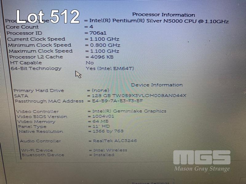 LAPTOP, DELL LATITUDE 3190, PENTIUM SILVER N5000 @ 1.1GHz, 4GB DDR4 RAM, 128GB M.2 SSD, 11.6" WIDESCREEN (1366x768), INTEL UHD GRAPHICS 605, Wi-Fi, BLUETOOTH, WINDOWS 11 PRO EDUCATION INSTALLED & POWER SUPPLY S/N:78K66S2