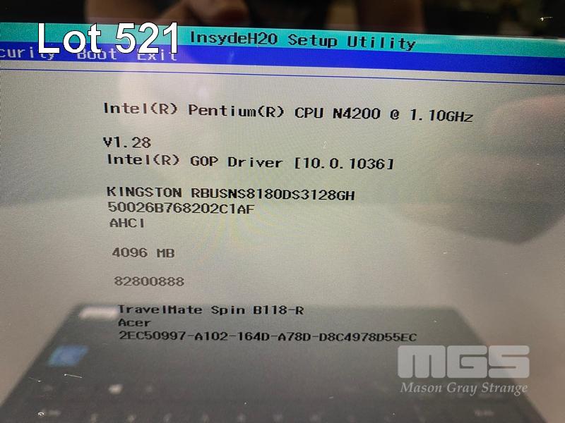 LAPTOP, ACER TRAVELMATE SPIN B118-R, PENTIUM N4200 @ 1.1GHz, 4GB RAM, 128GB M.2 SSD, 11.6" TOUCHSCREEN (1366x768), Wi-Fi, BLUETOOTH, WINDOWS 11 PRO EDUCATION INSTALLED & POWER SUPPLY (NOTE: BUBBLE MARKS ON SCREEN) S/N:82800888
