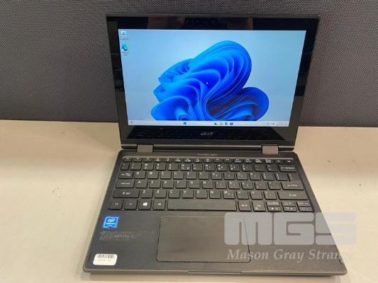 LAPTOP, ACER TRAVELMATE SPIN B118-R, PENTIUM N4200 @ 1.1GHz, 4GB RAM, 128GB M.2 SSD, 11.6" TOUCHSCREEN (1366x768), Wi-Fi, BLUETOOTH, WINDOWS 11 PRO EDUCATION INSTALLED & POWER SUPPLY (NOTE: BUBBLE MARKS ON SCREEN) S/N:82800524