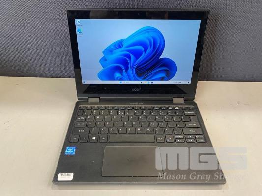 LAPTOP, ACER TRAVELMATE SPIN B118-R, PENTIUM N4200 @ 1.1GHz, 4GB RAM, 128GB M.2 SSD, 11.6" TOUCHSCREEN (1366x768), Wi-Fi, BLUETOOTH, WINDOWS 11 PRO EDUCATION INSTALLED & POWER SUPPLY (NOTE: BUBBLE MARKS ON SCREEN) S/N:82800911