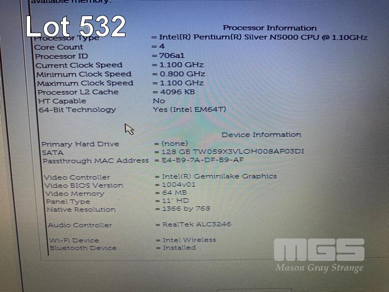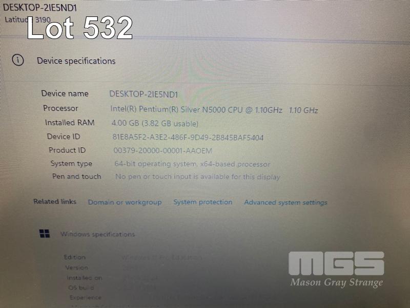 LAPTOP, DELL LATITUDE 3190, PENTIUM SILVER N5000 @ 1.1GHz, 4GB DDR4 RAM, 128GB M.2 SSD, 11.6" WIDESCREEN (1366x768), INTEL UHD GRAPHICS 605, Wi-Fi, BLUETOOTH, WINDOWS 11 PRO EDUCATION INSTALLED & POWER SUPPLY S/N:4KH76S2