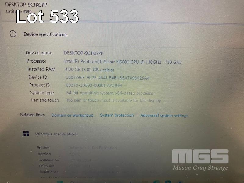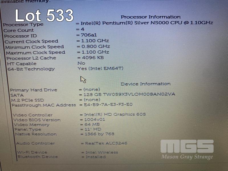 LAPTOP, DELL LATITUDE 3190, PENTIUM SILVER N5000 @ 1.1GHz, 4GB DDR4 RAM, 128GB M.2 SSD, 11.6" WIDESCREEN (1366x768), INTEL UHD GRAPHICS 605, Wi-Fi, BLUETOOTH, WINDOWS 11 PRO EDUCATION INSTALLED & POWER SUPPLY S/N:G5066S2