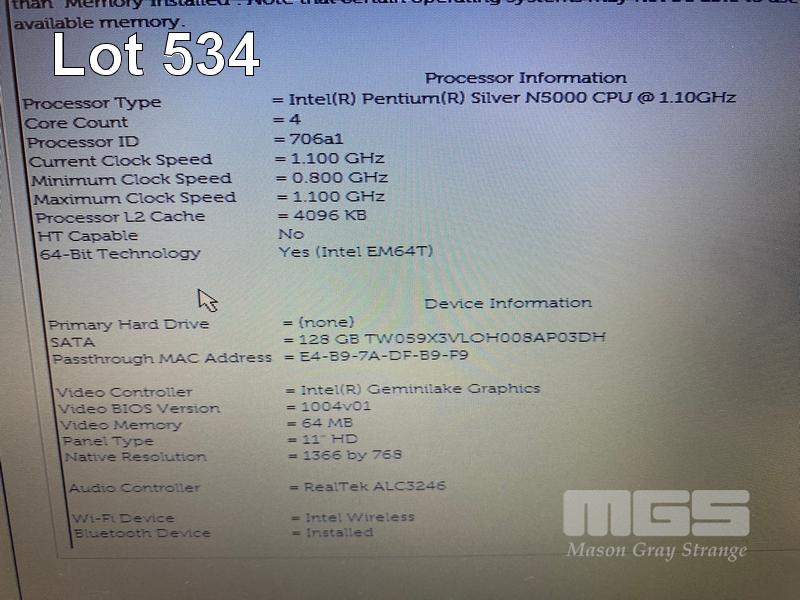 LAPTOP, DELL LATITUDE 3190, PENTIUM SILVER N5000 @ 1.1GHz, 4GB DDR4 RAM, 128GB M.2 SSD, 11.6" WIDESCREEN (1366x768), INTEL UHD GRAPHICS 605, Wi-Fi, BLUETOOTH, WINDOWS 11 PRO EDUCATION INSTALLED & POWER SUPPLY S/N:2MH76S2