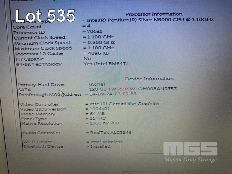 LAPTOP, DELL LATITUDE 3190, PENTIUM SILVER N5000 @ 1.1GHz, 4GB DDR4 RAM, 128GB M.2 SSD, 11.6" WIDESCREEN (1366x768), INTEL UHD GRAPHICS 605, Wi-Fi, BLUETOOTH, WINDOWS 11 PRO EDUCATION INSTALLED & POWER SUPPLY (NOTE: SCRATCH ON SCREEN) S/N:5DF66S2