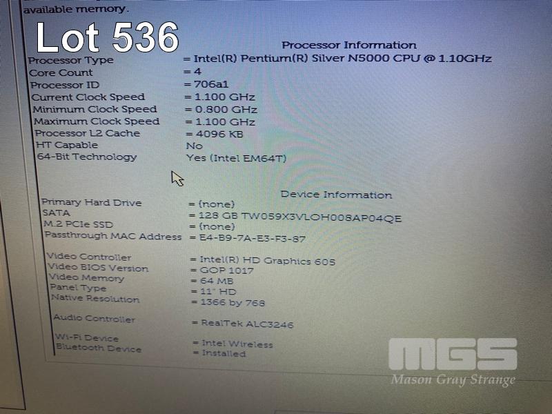 LAPTOP, DELL LATITUDE 3190, PENTIUM SILVER N5000 @ 1.1GHz, 4GB DDR4 RAM, 128GB M.2 SSD, 11.6" WIDESCREEN (1366x768), INTEL UHD GRAPHICS 605, Wi-Fi, BLUETOOTH, WINDOWS 11 PRO EDUCATION INSTALLED & POWER SUPPLY (NOTE: SCRATCH ON SCREEN) S/N:8SF76S2