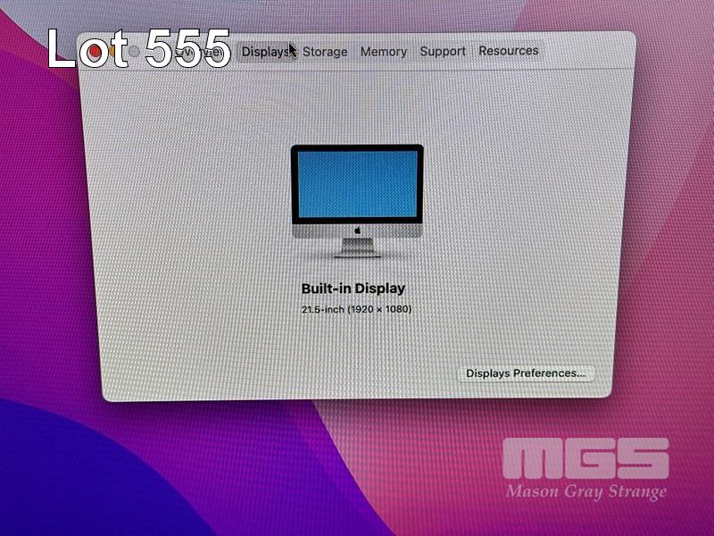APPLE iMAC (A1418), CORE i5 7360U (7TH GEN) @ 2.3GHz, 16GB DDR4 RAM, 256GB SSD, BUILT-IN 21.5" DISPLAY (1920x1080), INTEL IRIS PLUS GRAPHICS 640, Wi-Fi, BLUETOOTH, MAC OS 12 INSTALLED (NO KEYBOARD, NO MOUSE) S/N:C02VN0FMH7VF