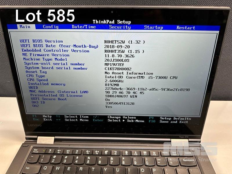 LAPTOP, LENOVO THINKPAD YOGA 370, TYPE 20JJ, CORE i5 7300U (7TH GEN) @ 2.6GHz, 8GB DDR4 RAM, 256GB NVMe M.2 SSD, 13.3" TOUCHSCREEN (1920x1080), INTEL HD VIDEO, Wi-Fi, BLUETOOTH, WINDOWS 10 PRO INSTALLED & POWER SUPPLY (NOTE: MINOR MARKS & SPOTS ON SCREEN) S/N:MP19V7EY