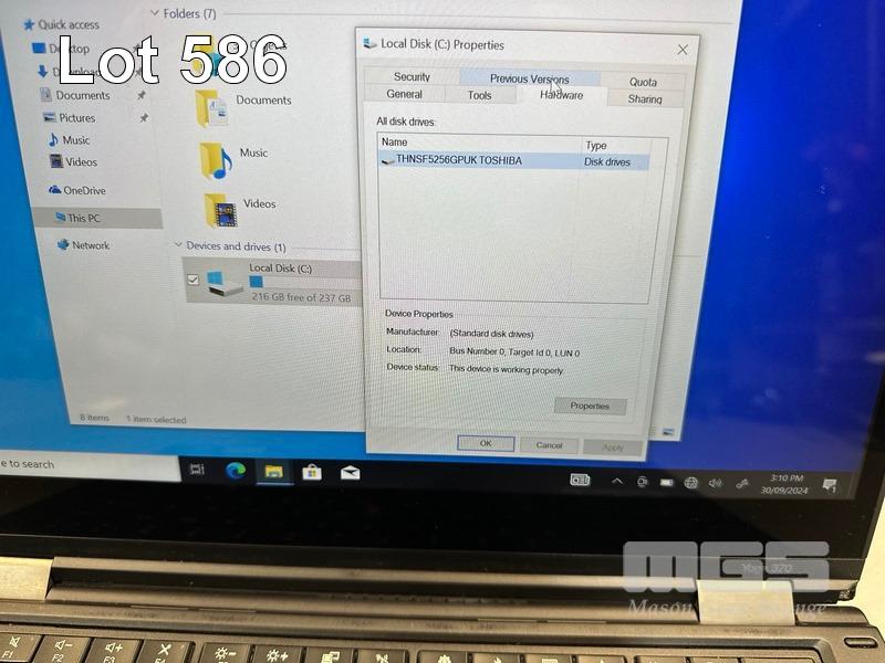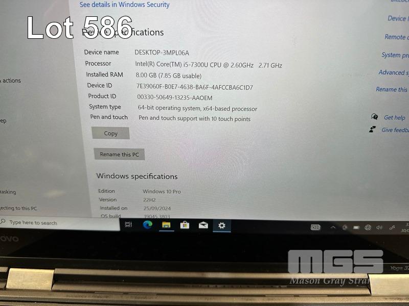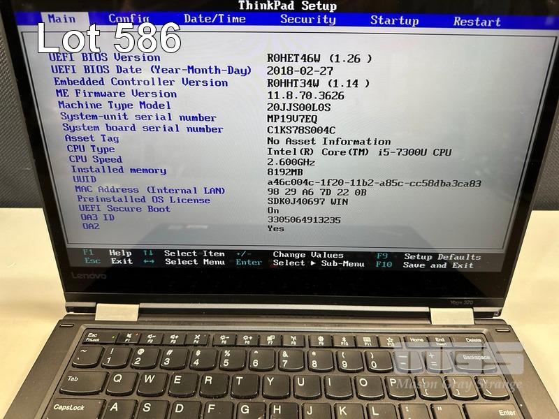 LAPTOP, LENOVO THINKPAD YOGA 370, TYPE 20JJ, CORE i5 7300U (7TH GEN) @ 2.6GHz, 8GB DDR4 RAM, 256GB NVMe M.2 SSD, 13.3" TOUCHSCREEN (1920x1080), INTEL HD VIDEO, Wi-Fi, BLUETOOTH, WINDOWS 10 PRO INSTALLED & POWER SUPPLY (NOTE: MINOR DAMAGE TO CASING, MARKS ON SCREEN) S/N:MP19V7EQ