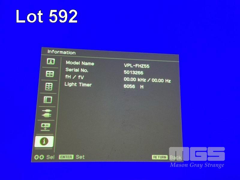 LASER PROJECTOR, SONY VPL-FHZ55 WUXGA 3LCD, 4,000 LUMENS, 6,056 HOURS SHOWING (NO REMOTE) (NOTE: DAMAGE TO CASING) S/N:5013266