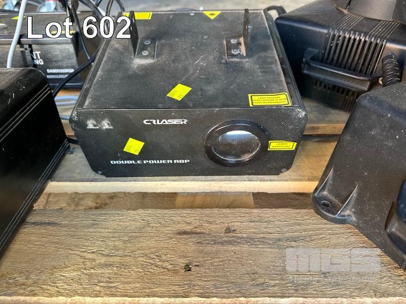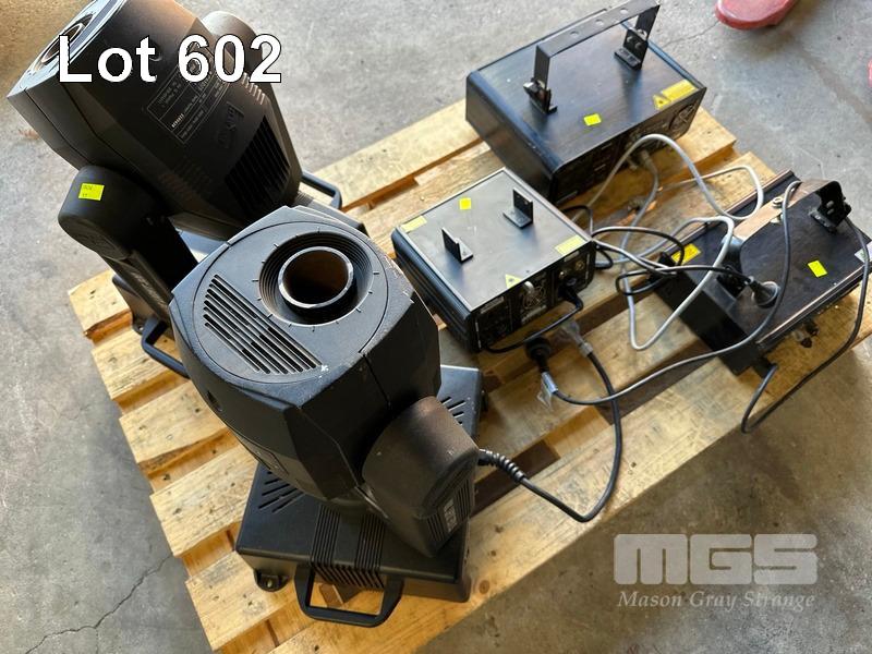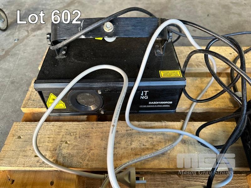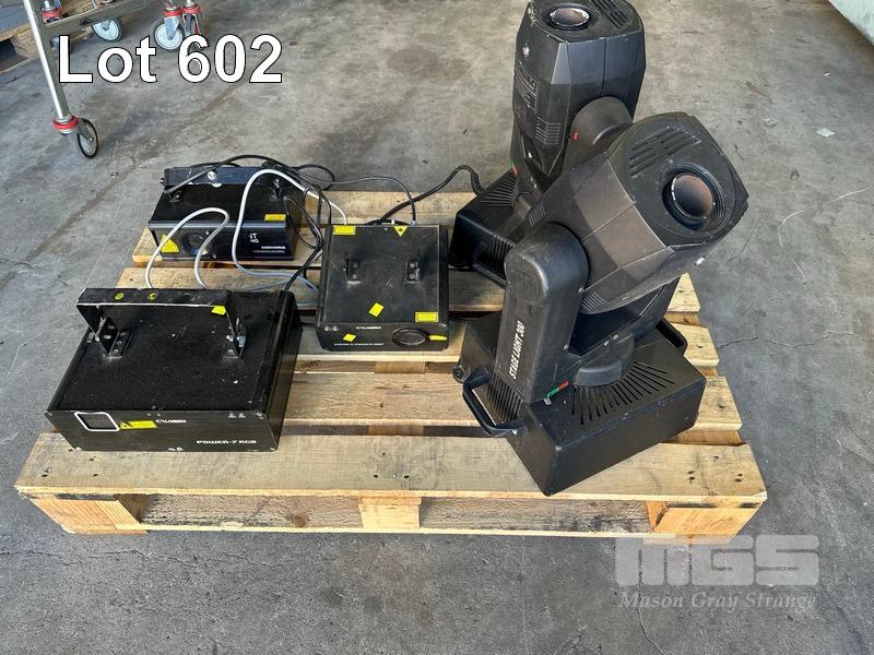 2 X STAGE LIGHT 300 MOVING HEAD SPOTLIGHTS. 3 X ASSORTED LASER LIGHTS.