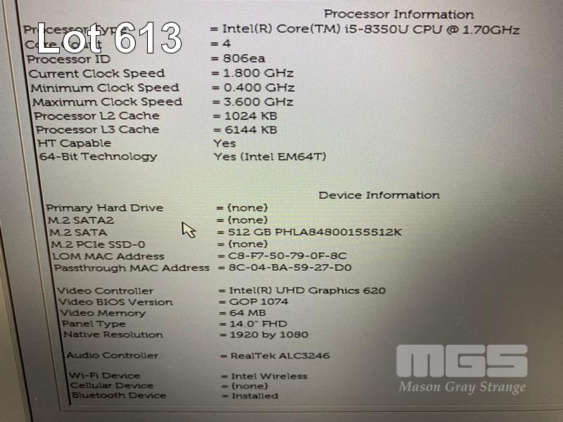 LAPTOP, DELL LATITUDE 5490, CORE i5 8350U (8TH GEN) @ 1.7GHz, 8GB DDR4 RAM, 512GB M.2 SSD, 14" WIDESCREEN (1920x1080), INTEL UHD GRAPHICS 620, Wi-Fi, BLUETOOTH, WINDOWS 11 HOME INSTALLED & POWER SUPPLY S/N:57HGRV2