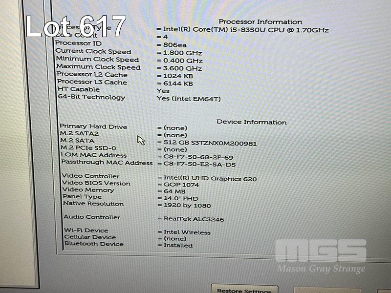 LAPTOP, DELL LATITUDE 5490, CORE i5 8350U (8TH GEN) @ 1.7GHz, 16GB DDR4 RAM, 512GB M.2 SSD, 14" WIDESCREEN (1920x1080), INTEL UHD GRAPHICS 620, Wi-Fi, BLUETOOTH, WINDOWS 11 HOME INSTALLED & POWER SUPPLY S/N:JRDNNV2