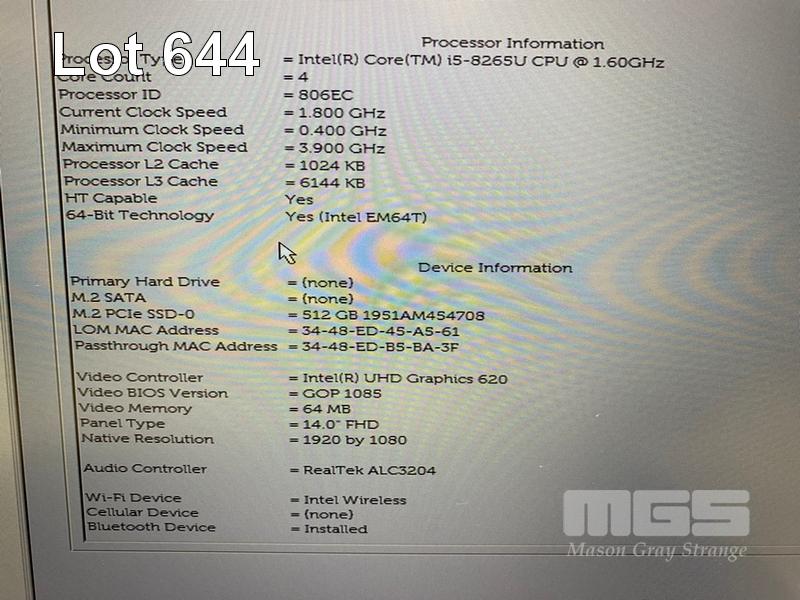 LAPTOP, DELL LATITUDE 5400, CORE i5 8265U (8TH GEN) @ 1.6GHz, 8GB DDR4 RAM, 512GB NVMe M.2 SSD, 14" WIDESCREEN (1920x1080), INTEL UHD GRAPHICS 620, Wi-Fi, BLUETOOTH, WINDOWS 11 HOME INSTALLED & POWER SUPPLY (NOTE: MARKS ON SCREEN) S/N:B15SL13