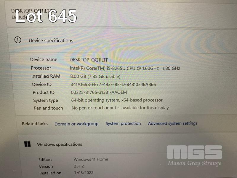 LAPTOP, DELL LATITUDE 5400, CORE i5 8265U (8TH GEN) @ 1.6GHz, 8GB DDR4 RAM, 512GB NVMe M.2 SSD, 14" WIDESCREEN (1920x1080), INTEL UHD GRAPHICS 620, Wi-Fi, BLUETOOTH, WINDOWS 11 HOME INSTALLED & POWER SUPPLY (NOTE: MARKS ON SCREEN) S/N:GF8CW33