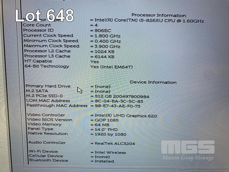 LAPTOP, DELL LATITUDE 5400, CORE i5 8265U (8TH GEN) @ 1.6GHz, 8GB DDR4 RAM, 512GB NVMe M.2 SSD, 14" WIDESCREEN (1920x1080), INTEL UHD GRAPHICS 620, Wi-Fi, BLUETOOTH, WINDOWS 11 HOME INSTALLED (NO POWER SUPPLY)