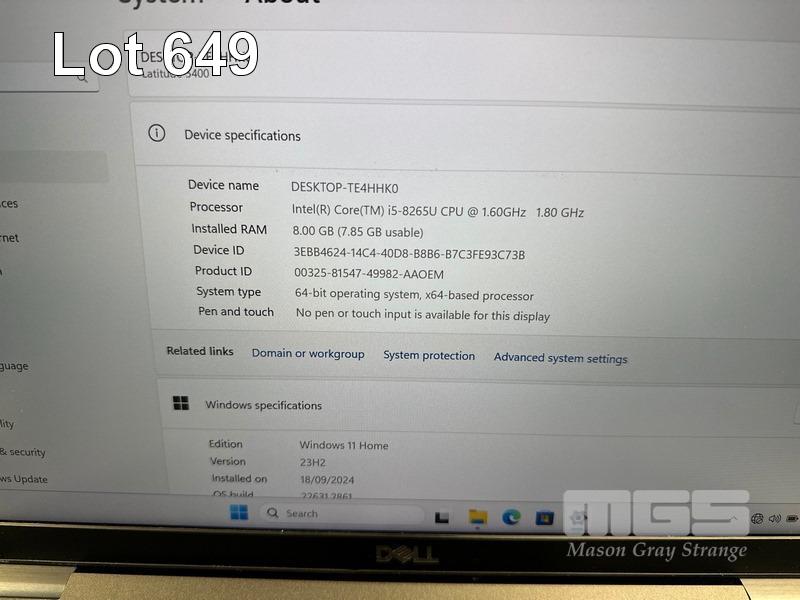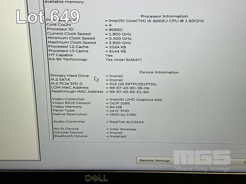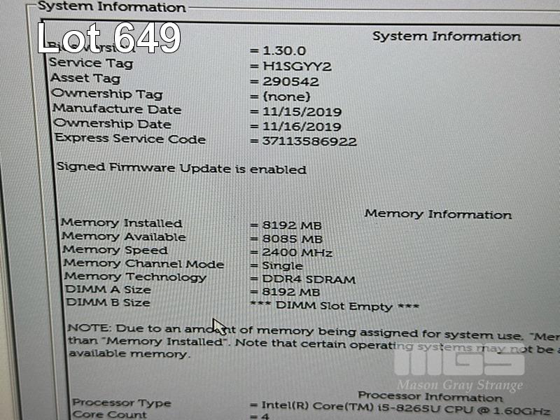 LAPTOP, DELL LATITUDE 5400, CORE i5 8265U (8TH GEN) @ 1.6GHz, 8GB DDR4 RAM, 512GB NVMe M.2 SSD, 14" WIDESCREEN (1920x1080), INTEL UHD GRAPHICS 620, Wi-Fi, BLUETOOTH, WINDOWS 11 HOME INSTALLED (NO POWER SUPPLY) (NOTE: BATTERY NOT HOLDING CHARGE, MARKS ON SCREEN) S/N:H1SGYY2