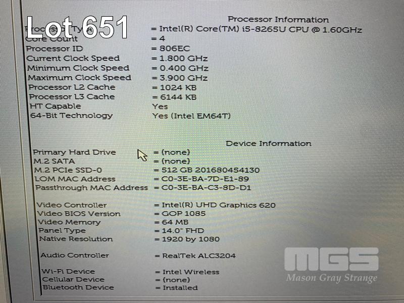 LAPTOP, DELL LATITUDE 5400, CORE i5 8265U (8TH GEN) @ 1.6GHz, 8GB DDR4 RAM, 512GB NVMe M.2 SSD, 14" WIDESCREEN (1920x1080), INTEL UHD GRAPHICS 620, Wi-Fi, BLUETOOTH, WINDOWS 11 HOME INSTALLED & POWER SUPPLY (NOTE: SMALL DENT IN CASING, MARKS ON SCREEN) S/N:1F8CW33