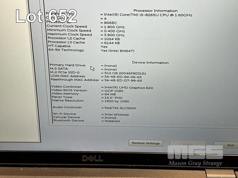 LAPTOP, DELL LATITUDE 5400, CORE i5 8265U (8TH GEN) @ 1.6GHz, 8GB DDR4 RAM, 512GB NVMe M.2 SSD, 14" WIDESCREEN (1920x1080), INTEL UHD GRAPHICS 620, Wi-Fi, BLUETOOTH, WINDOWS 11 HOME INSTALLED (NO POWER SUPPLY) (NOTE: TOUCHPAD BUTTON FAULT, MINIOR CASING DAMAGE & CRACK LINE, MARKS ON SCREEN) S/N:2FYV533