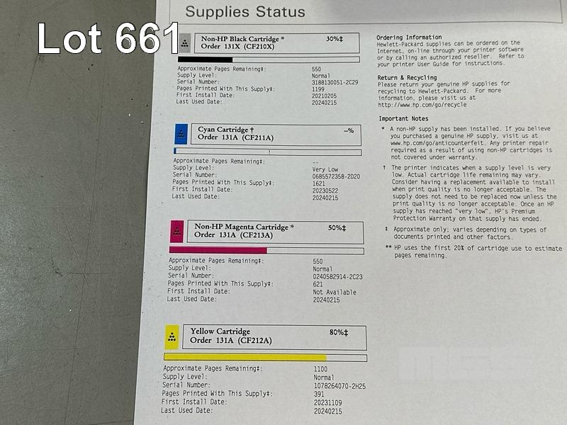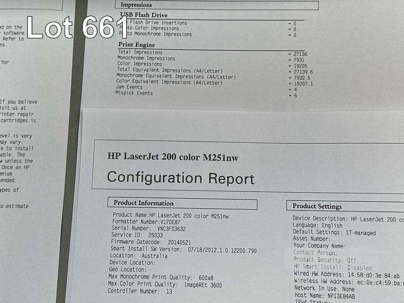 PRINTER, HP LASERJET PRO 200 COLOUR M251nw, USB, NETWORK, WIRELESS, 19,205 COLOUR & 7,931 B&W PAGES (TEST PAGE ATTACHED) S/N:VNC3F03632