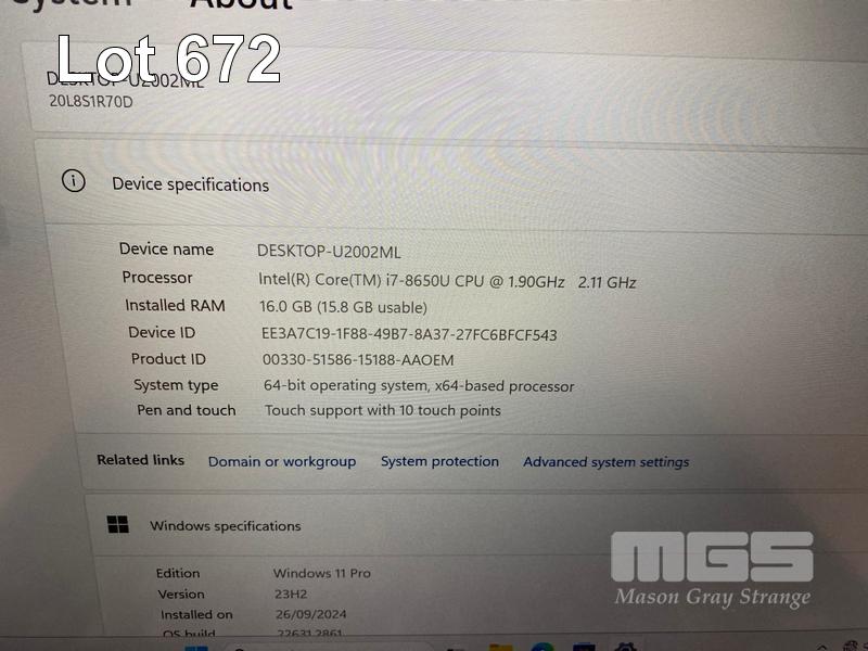 LAPTOP, LENOVO THINKPAD T480s, TYPE 20L8, CORE i7 8650U (8TH GEN) @ 1.9GHz, 16GB DDR4 RAM, 512GB NVMe M.2 SSD, 14" TOUCHSCREEN (1920x1080), INTEL HD VIDEO, Wi-Fi, BLUETOOTH, WINDOWS 11 PRO INSTALLED (NO USB-C POWER SUPPLY (NOTE: MINOR MARKS ON SCREEN) S/N:PC0Z5G2N