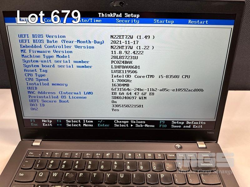 LAPTOP, LENOVO THINKPAD T480s, TYPE 20L8, CORE i5 8350U (8TH GEN) @ 1.7GHz, 16GB DDR4 RAM, 256GB NVMe M.2 SSD, 14" TOUCHSCREEN (1920x1080), INTEL HD VIDEO, Wi-Fi, BLUETOOTH, WINDOWS 11 PRO INSTALLED (NO USB-C POWER SUPPLY) (NOTE: MISSING "S" KEY, SOME KEYS WORN, MINOR MARKS ON SCREEN) S/N:PC0Z4BAX