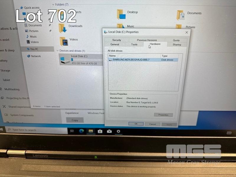 LAPTOP, LENOVO THINKPAD P51 MOBILE WORKSTATION, TYPE 20HJ, CORE i7 7820HQ (7TH GEN) @ 2.9GHz, 8GB DDR4 RAM, 512GB NVMe M.2 SSD, 15.6" WIDESCREEN (1920x1080), 4GB NVIDIA QUADRO M2200 VIDEO, Wi-Fi, BLUETOOTH, WINDOWS 10 PRO INSTALLED (NO POWER SUPPLY) (NOTE: MARKS & SPOT ON SCREEN) S/N:PF11503G