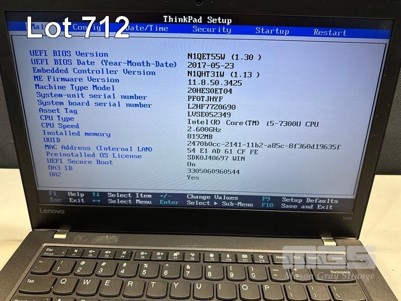 LAPTOP, LENOVO THINKPAD T470, TYPE 20HE, CORE i5 7300U (7TH GEN) @ 2.6GHz, 8GB DDR4 RAM, 256GB NVMe M.2 SSD, 14" WIDESCREEN (1366x768), INTEL HD VIDEO, Wi-Fi, BLUETOOTH, WINDOWS 10 PRO INSTALLED & POWER SUPPLY (NOTE: CASING POOR CONDITION) S/N:PF0TJHYF