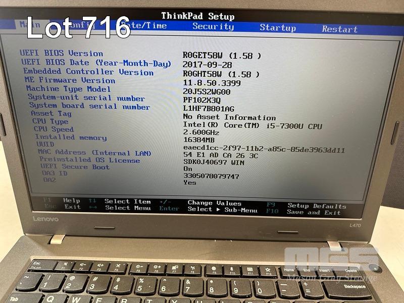 LAPTOP, LENOVO THINKPAD L470, TYPE 20J5, CORE i5 7300U (7TH GEN) @ 2.6GHz, 16GB DDR4 RAM, 256GB SSD, 14" WIDESCREEN (1920x1080), INTEL HD VIDEO, Wi-Fi, BLUETOOTH, WINDOWS 10 PRO INSTALLED & POWER SUPPLY S/N:PF102X3Q