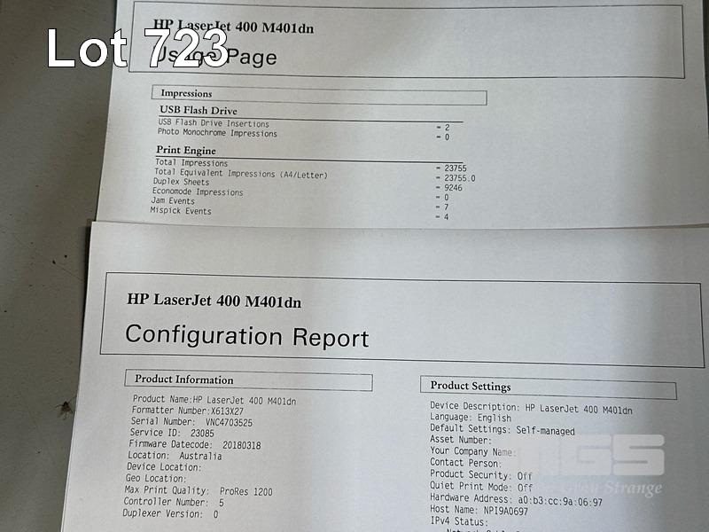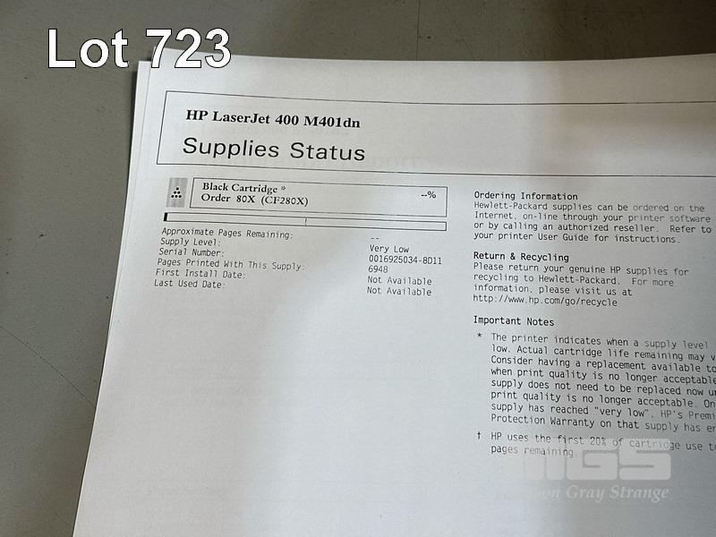 PRINTER, HP LASERJET PRO 400 M401dn, USB, NETWORK, 23,755 PAGES (TEST PAGE ATTACHED - TONER VERY LOW)