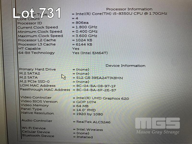 LAPTOP, DELL LATITUDE 5490, CORE i5 8350U (8TH GEN) @ 1.7GHz, 8GB DDR4 RAM, 512GB M.2 SSD, 14" WIDESCREEN (1920x1080), INTEL UHD GRAPHICS 620, Wi-Fi, BLUETOOTH, WINDOWS 11 HOME INSTALLED & POWER SUPPLY