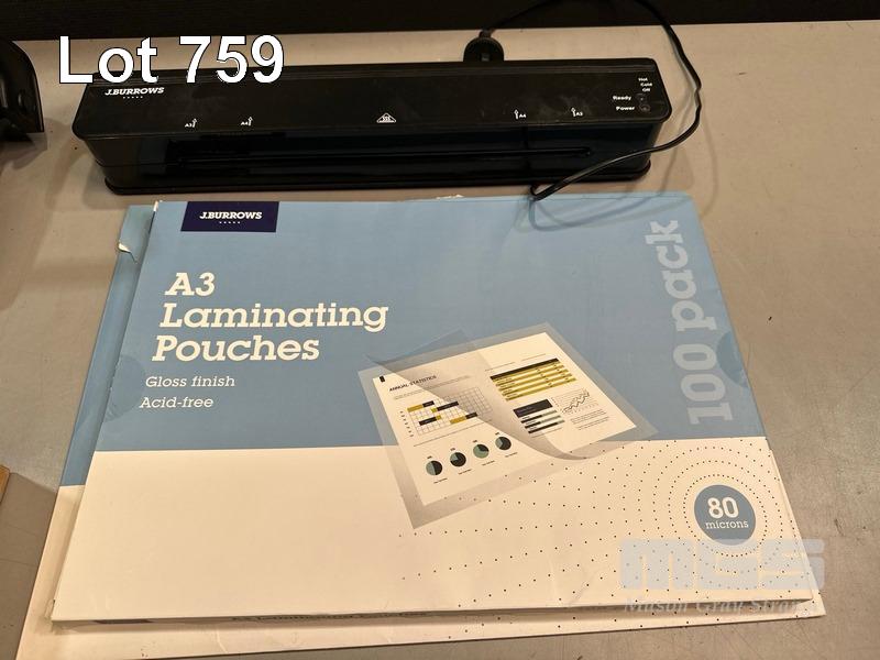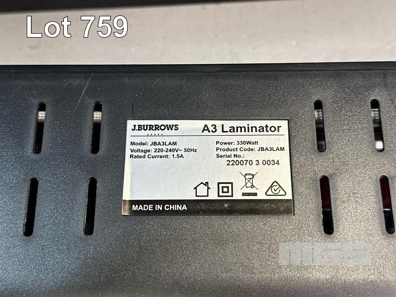 FELLOWES STAR 150 BINDING MACHINE, J BURROWS A3 LAMINATOR, J BURROWS A3 GUILLOTINE