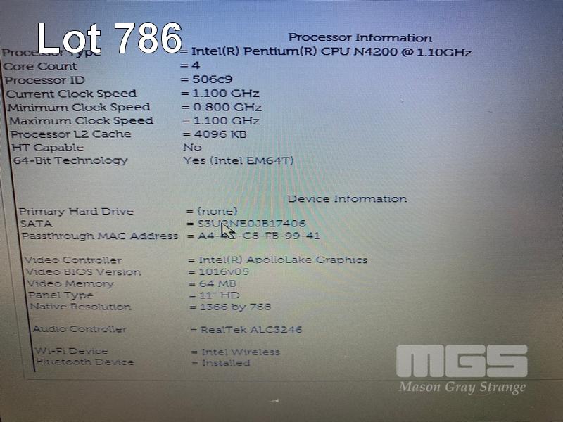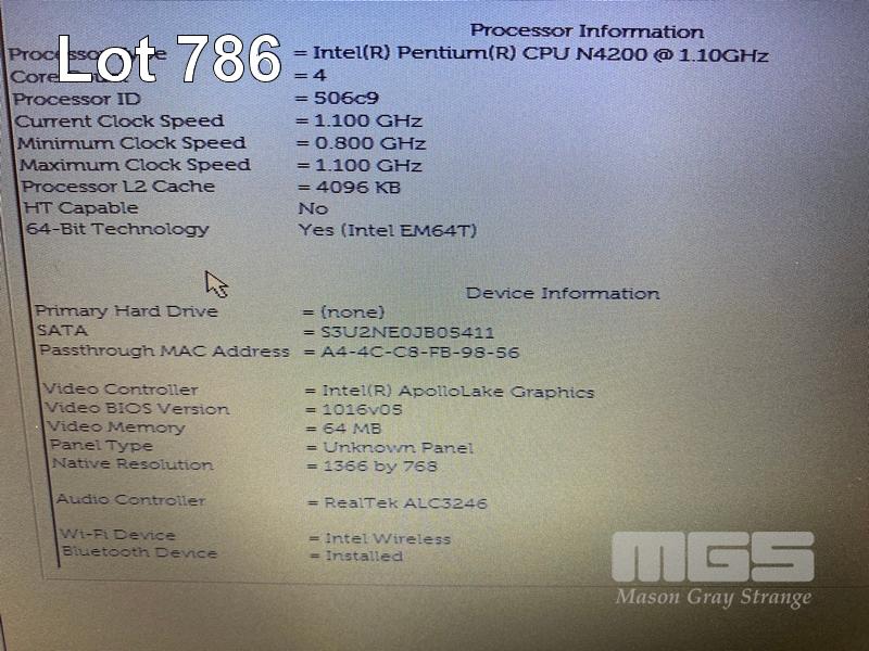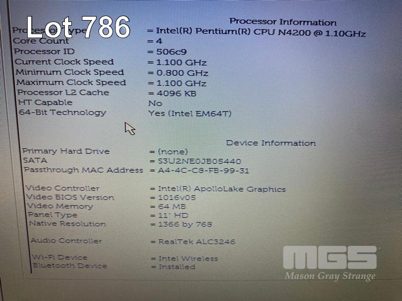 4 x LAPTOPS INC. - DELL LATITUDE 3180, PENTIUM N4200 @ 1.1GHz, 4GB DDR3 RAM, 128GB M.2 SSD, 11.6" WIDESCREEN (1366x768), INTEL HD GRAPHICS, Wi-Fi, BLUETOOTH, WINDOWS 11 PRO EDUCATION INSTALLED (NO POWER SUPPLIES) (NOTE: BATTERIES NOT HOLDING CHARGE) S/N:D7004M2, 63004M2, 3RTZ3M2, 30604M2