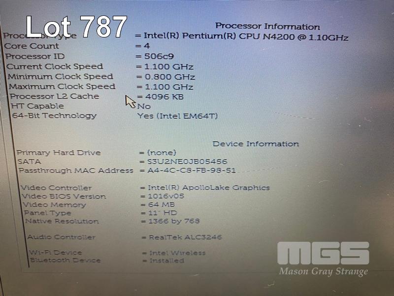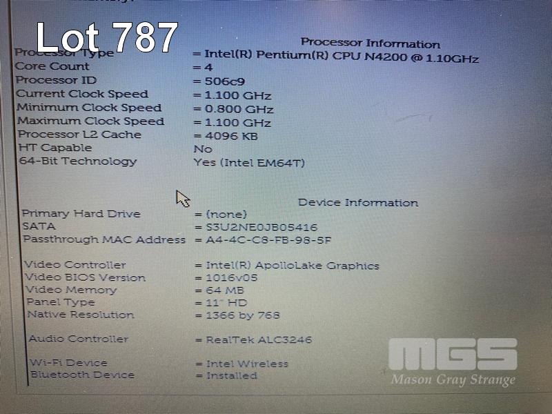 4 x LAPTOPS INC. - DELL LATITUDE 3180, PENTIUM N4200 @ 1.1GHz, 4GB DDR3 RAM, 128GB M.2 SSD, 11.6" WIDESCREEN (1366x768), INTEL HD GRAPHICS, Wi-Fi, BLUETOOTH, WINDOWS 11 PRO EDUCATION INSTALLED (NO POWER SUPPLIES) (NOTE: VARIOUS DAMAGE, SCRATCHES, BATTERIES NOT HOLDING CHARGE) S/N:BV504M2, BPTZ3M2, JWJ04M2, 8PC04M2