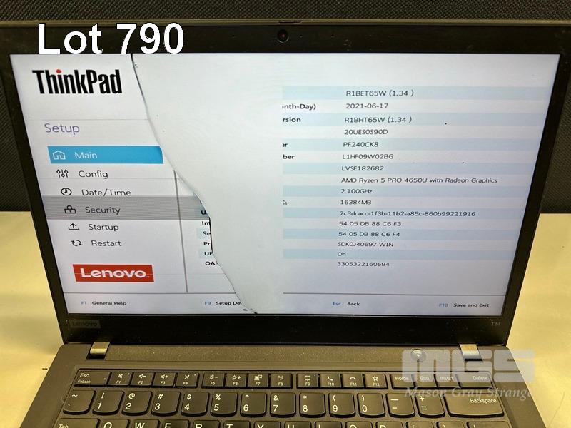 2 x LAPTOPS INC. - LENOVO THINKPAD T14 Gen1, TYPE 20UE, AMD RYZEN 5 PRO 4650U @ 2.1GHz, 16GB DDR4 RAM, 512GB NVMe M.2 SSD, (NO USB-C POWER SUPPLIES) (NOTE: DAMAGED SCREENS & TOUCHPAD FAULT) 1 x LAPTOP INC. - LENOVO THINKPAD T490s, NO HDD (FAULTY, POOR CONDITION) (NO USB-C POWER SUPPLY) S/N:PF240CK8, PF240LT4, PC1B4PQ4