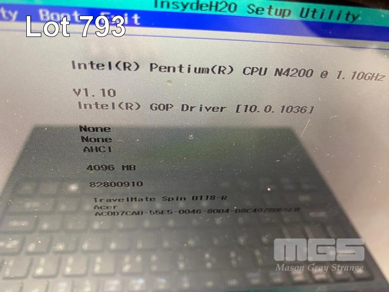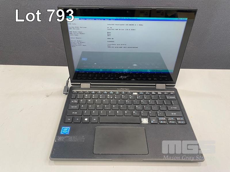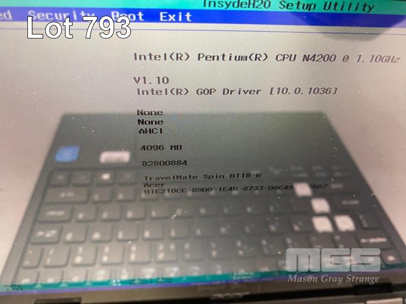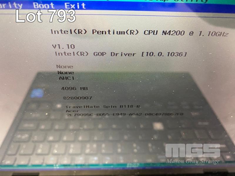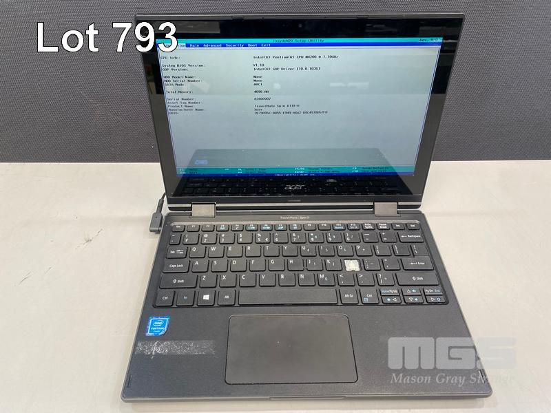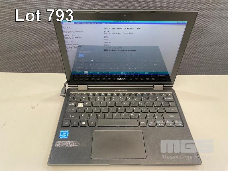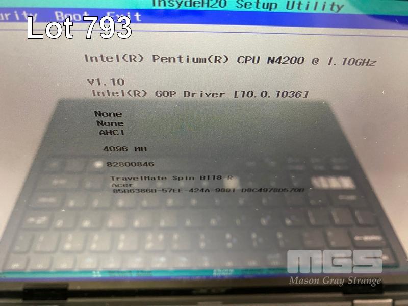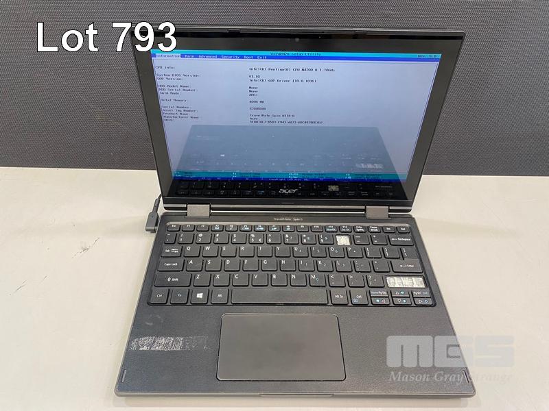 8 x LAPTOPS INC. - ACER TRAVELMATE SPIN B118-R, PENTIUM N4200 @ 1.1GHz, 4GB RAM, NO HDD (NO POWER SUPPLIES) (NOTE: ALL MISSING VARIOUS KEYBOARD KEYS, 1 x WITH DAMAGE) S/N:82800884, 82800842, 82800906, 82800846, 82800880, 82800889, 82800907, 82800910