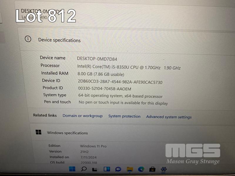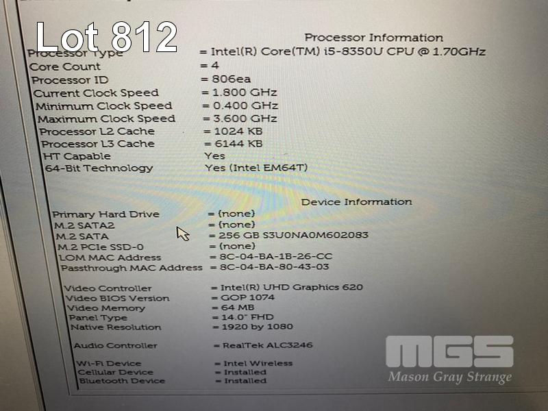 LAPTOP, DELL LATITUDE 5490, CORE i5 8350U (8TH GEN) @ 1.7GHz, 8GB DDR4 RAM, 256GB M.2 SSD, 14" WIDESCREEN (1920x1080), INTEL UHD GRAPHICS 620, Wi-Fi, CELLUAR, BLUETOOTH, WINDOWS 11 PRO INSTALLED (NO POWER SUPPLY) (NOTE: MARKS ON SCREEN) S/N:FNZP3X2