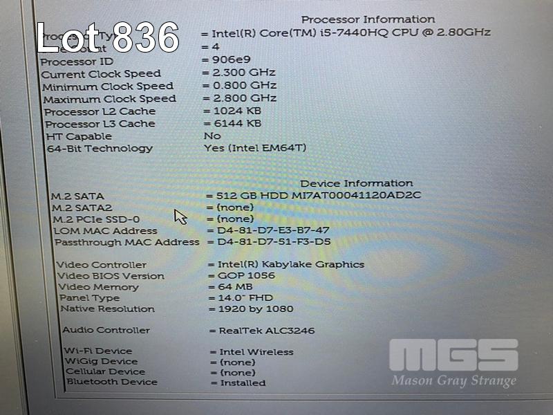 LAPTOP, DELL LATITUDE 5480, CORE i5 7440HQ (7TH GEN) @ 2.8GHz, 8GB DDR4 RAM, 512GB M.2 SSD, 14" WIDESCREEN (1920x1080), INTEL HD GRAPHICS 630, Wi-Fi, BLUETOOTH, WINDOWS 10 HOME INSTALLED & POWER SUPPLY (NOTE: MINOR MARKS ON SCREEN) S/N:G0MX2M2