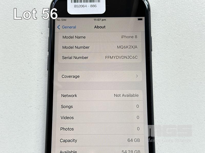 APPLE iPHONE 8, 64GB, SPACE GREY, MODEL MQ6K2X/A, BATTERY HEALTH 95% (NO CABLE, NO CHARGER) (NOTE: MINOR DAMAGE) S/N:FFMYDVDNJC6C